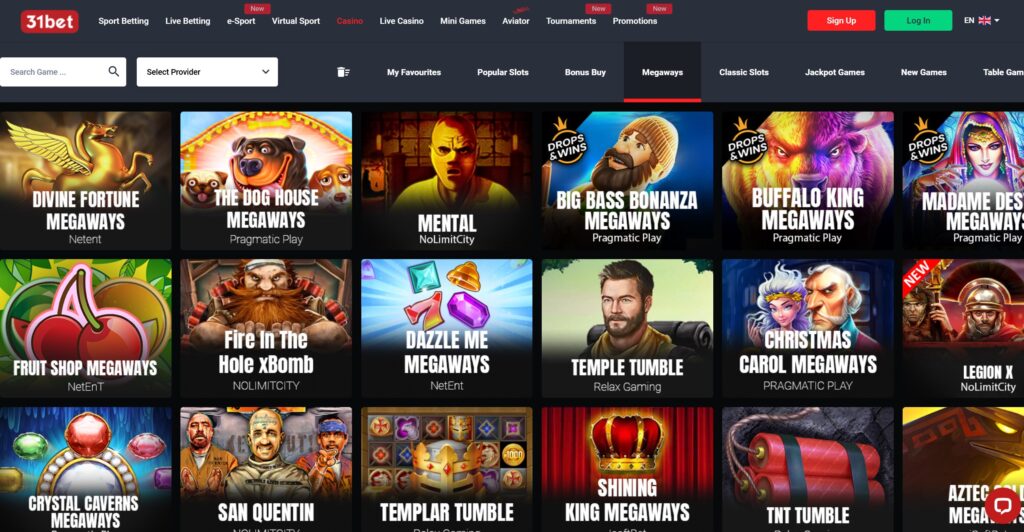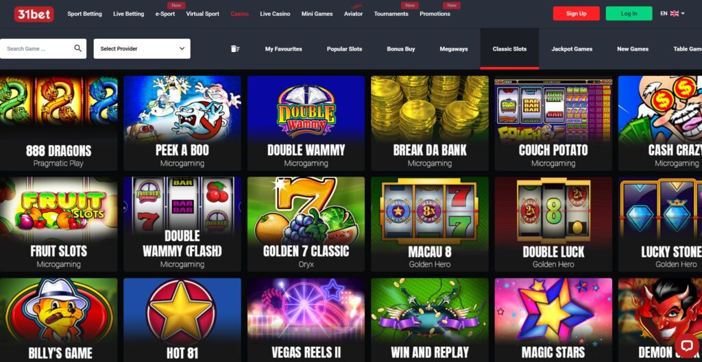Selecția de Jocuri la 31Bet Casino