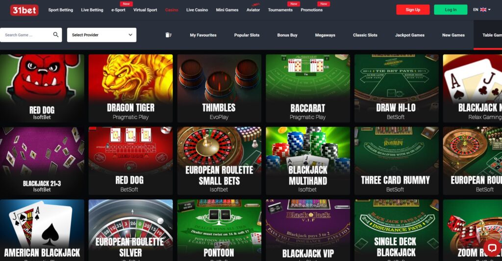 Jocuri de Masă la 31Bet Casino