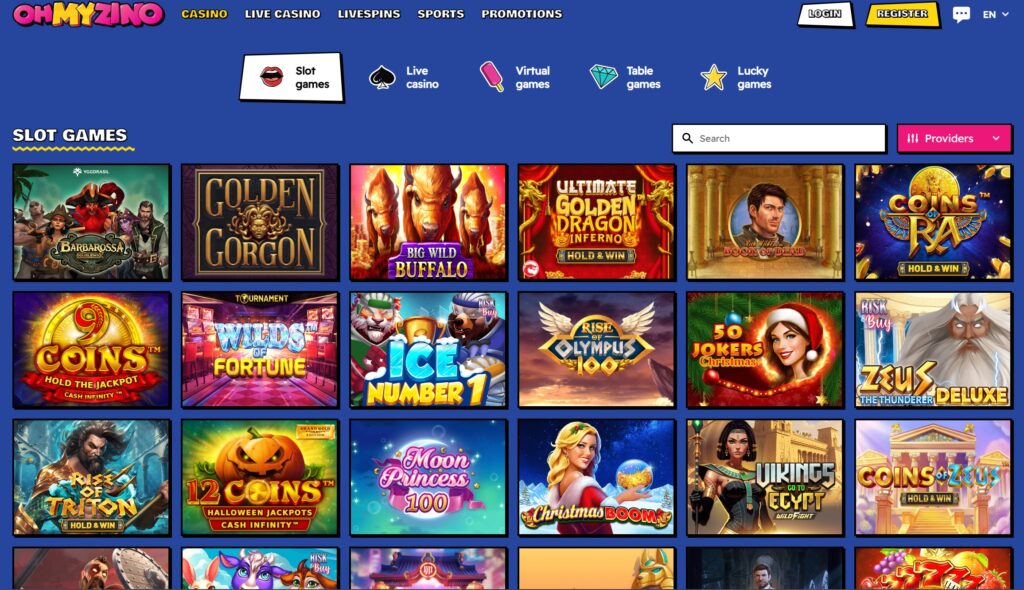 OhMyZino Casino oferă o selecție vastă de jocuri, organizate în categorii bine definite, care fac navigarea și alegerea titlurilor extrem de simplă. Fie că preferi sloturile, jocurile de masă clasice sau secțiunea live, platforma are opțiuni pentru toate gusturile.