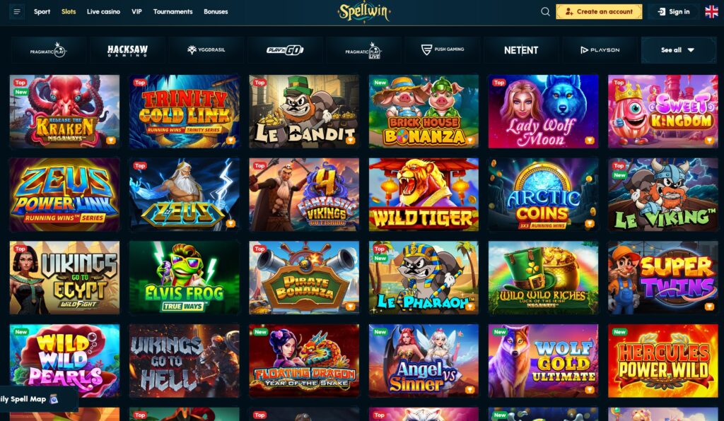 Spellwin oferă o gamă largă de jocuri de cazino, inclusiv sloturi video, jocuri de masă și opțiuni live. -
